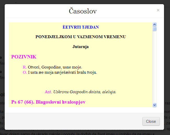 Molitva časoslova javna je molitva Crkve. Klikom se otvara “Časoslov za puk Božji”, izdanje HILP, Zadar.