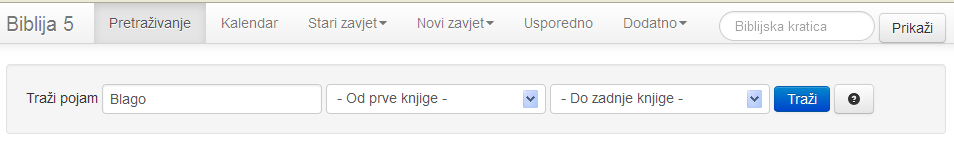 Program Biblija ver 5.0 nudi sedam glavnih izbornih ponuda:
