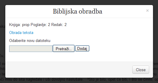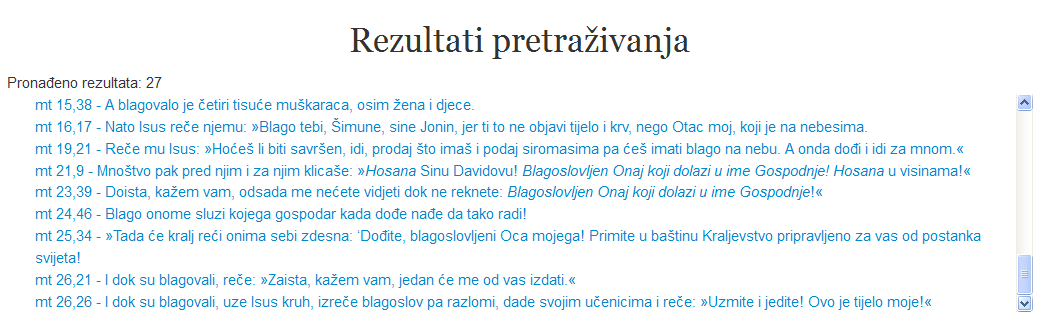 Rezultati pretraživanja ispisuju se u nizu, a klikom na svaki od njih dolazi se do traženog mjesta u tekstu u kojem je niz pronadjen.
