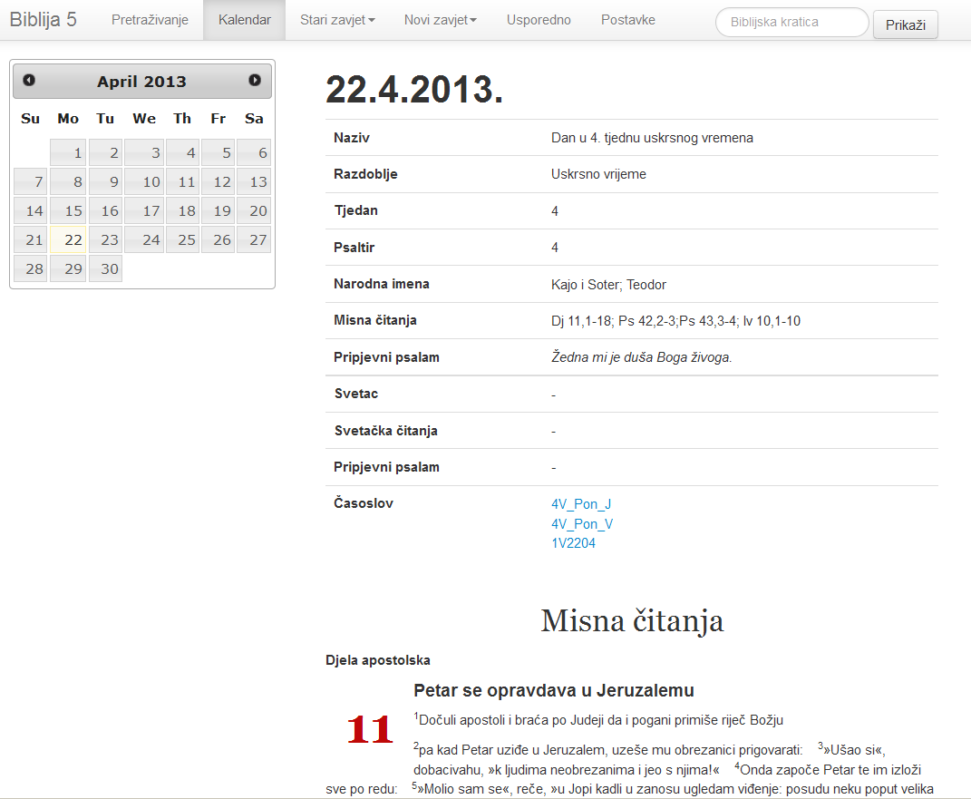 S kalendarom možemo dohvaćati misna i svetačka čitanja i časoslov kroz svaki dan liturgijske godine.