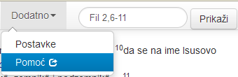 služi za informaciju o Božjoj riječi koju korisnik čita (O Bibliji), kako je tehnički dohvaća i obrađuje (O programu), te kome se obratiti ako se jave poteškoće (O nama). Tu je i video pomoć za svaku izbornu ponudu.