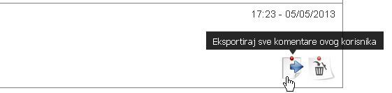 Opcija za brisanje korisnika i svih njegovih komentara nalazi se desno od njegovog imena, a pojavljuje se prilikom prelaska mišem poviše imena.