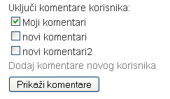 Korisnik ima mogućnost označiti željene korisnike čije komentare želi prikazivati.
