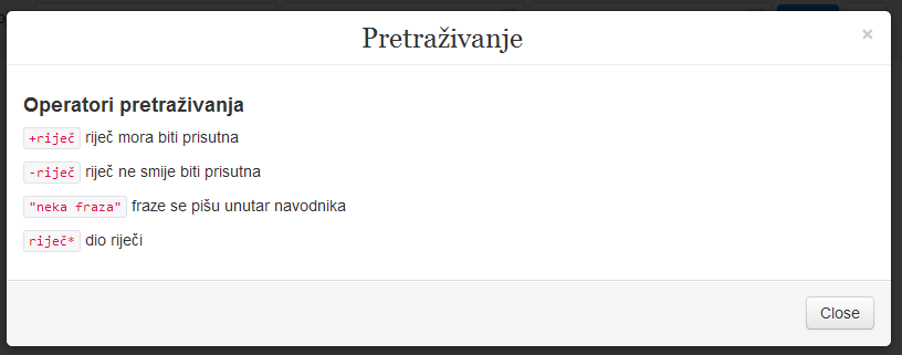 Pri zadavanju teksta koji se traži moguće je postaviti više različitih pretraga kako je prikazano slikom.