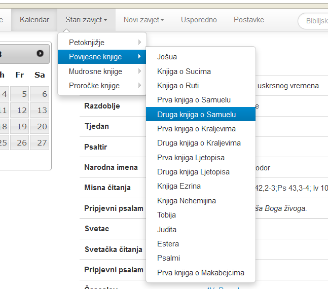 S kalendarom možemo dohvaćati misna i svetačka čitanja i časoslov kroz svaki dan liturgijske godine.