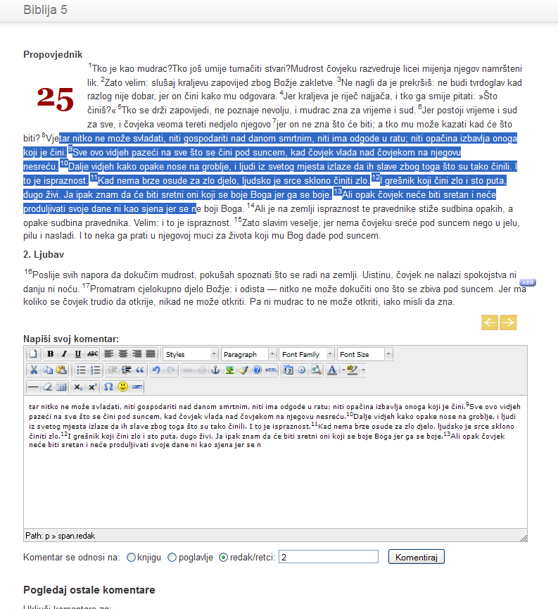 Rezultati pretraživanja ispisuju se u nizu, a klikom na svaki od njih dolazi se do traženog mjesta u tekstu u kojem je niz pronadjen.